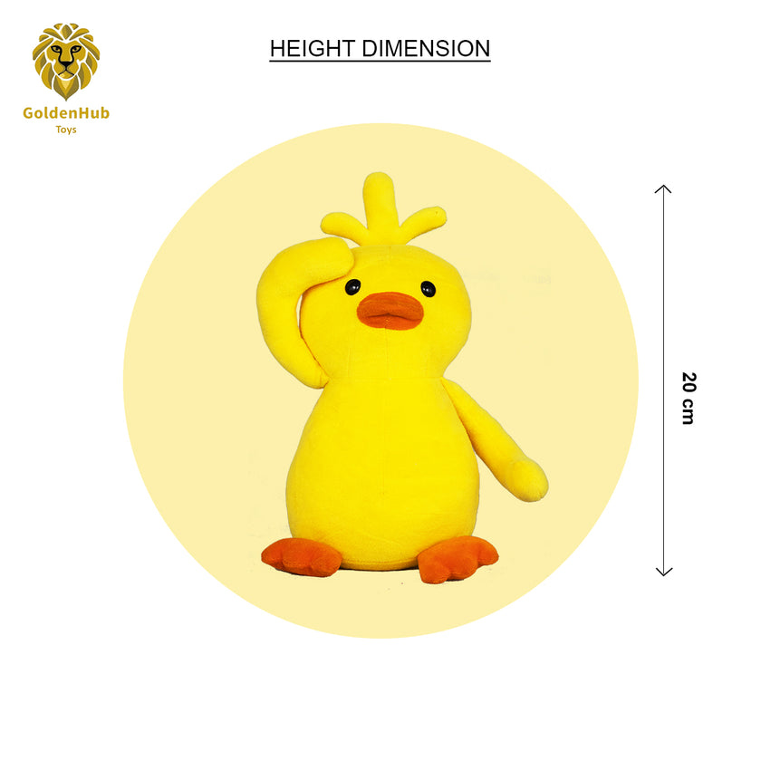 GoldenhubToys Saluting Chick Soft Toy – 30 CM | Yellow Plush Toy with Salute Pose | Cute & Premium Chick Stuffed Animal for Kids, Babies & Gifting